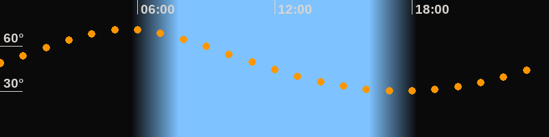 Höchster Stand (Kulmination)05:34 Uhr (h = 71°)