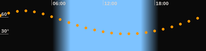 Höchster Stand (Kulmination)02:49 Uhr (h = 71°)