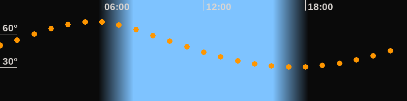 Höchster Stand (Kulmination)05:23 Uhr (h = 71°)