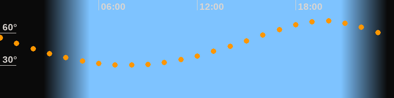 Höchster Stand (Kulmination)19:44 Uhr (h = 71°)