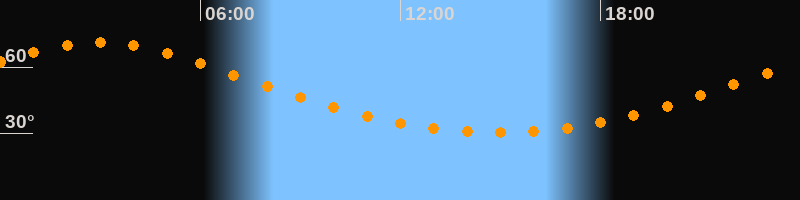 Höchster Stand (Kulmination)02:56 Uhr (h = 71°)