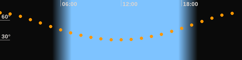Höchster Stand (Kulmination)23:44 Uhr (h = 71°)