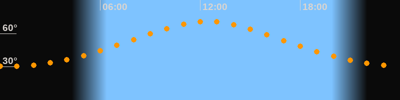 Höchster Stand (Kulmination)12:25 Uhr (h = 71°)