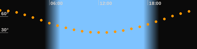 Höchster Stand (Kulmination)00:13 Uhr (h = 71°)