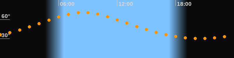 Höchster Stand (Kulmination)08:34 Uhr (h = 71°)