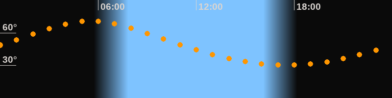 Höchster Stand (Kulmination)05:33 Uhr (h = 71°)