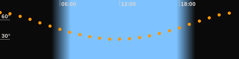 Höchster Stand (Kulmination)23:43 Uhr (h = 71°)