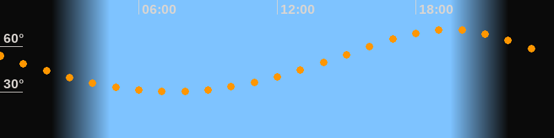 Höchster Stand (Kulmination)19:23 Uhr (h = 71°)
