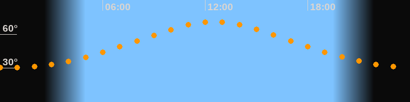 Höchster Stand (Kulmination)12:30 Uhr (h = 71°)