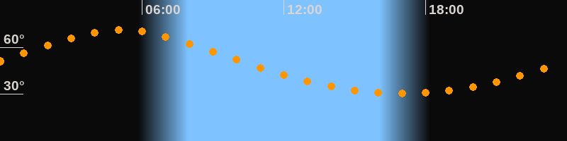 Höchster Stand (Kulmination)05:06 Uhr (h = 71°)