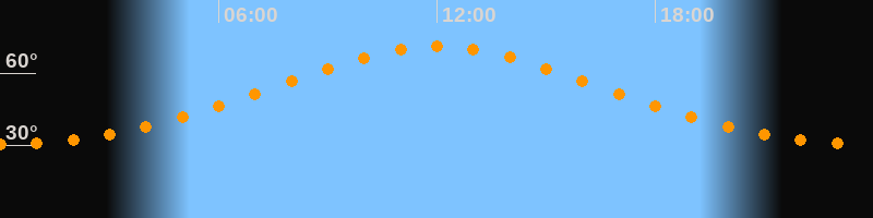 Höchster Stand (Kulmination)12:00 Uhr (h = 71°)