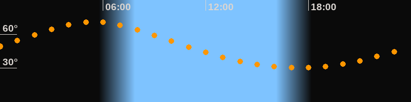 Höchster Stand (Kulmination)05:27 Uhr (h = 71°)