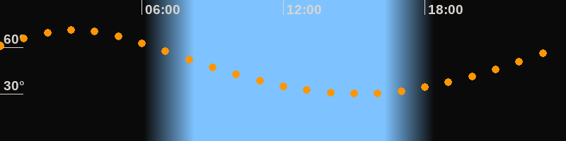 Höchster Stand (Kulmination)03:09 Uhr (h = 71°)