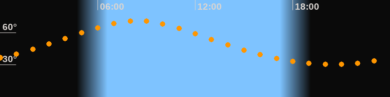 Höchster Stand (Kulmination)08:25 Uhr (h = 71°)