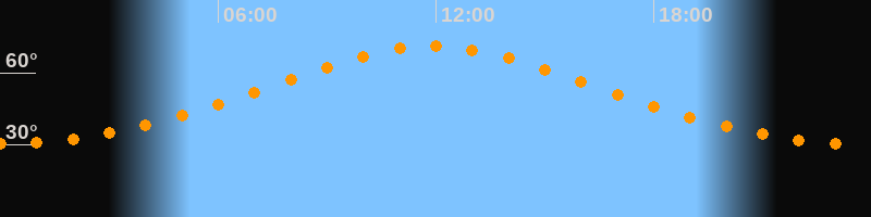Höchster Stand (Kulmination)11:54 Uhr (h = 71°)