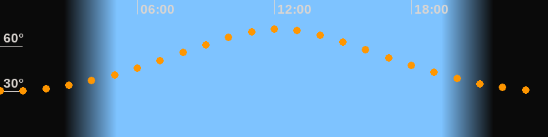 Höchster Stand (Kulmination)12:11 Uhr (h = 71°)