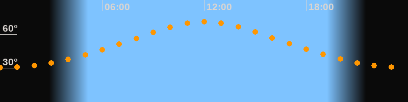 Höchster Stand (Kulmination)12:03 Uhr (h = 71°)