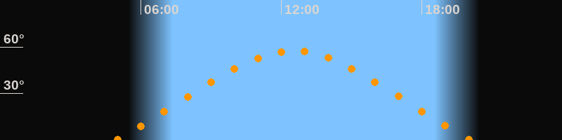 | Höchster Stand (Kulmination) | 12:30 Uhr (h = 57,5°) |