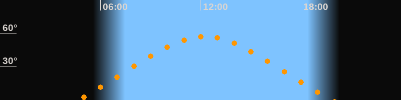 | Höchster Stand (Kulmination) | 12:15 Uhr (h = 57,5°) |