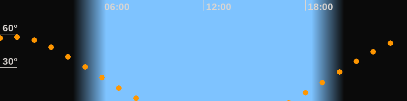 | Untergang | 08:23 Uhr im Nordwesten (αAz = 300,4°) |