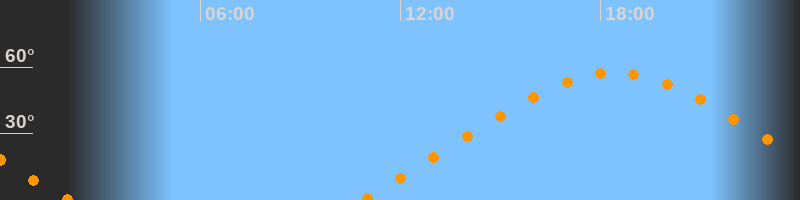 | Höchster Stand (Kulmination) | 18:25 Uhr (h = 57,5°) |