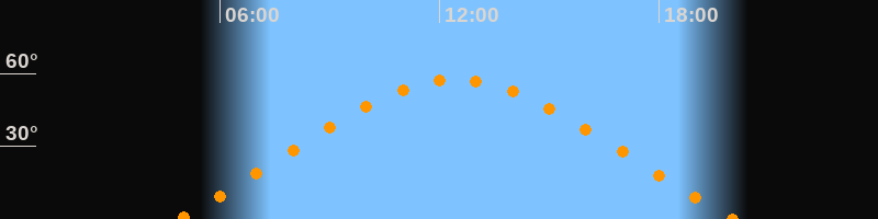 | Höchster Stand (Kulmination) | 12:27 Uhr (h = 57,5°) |