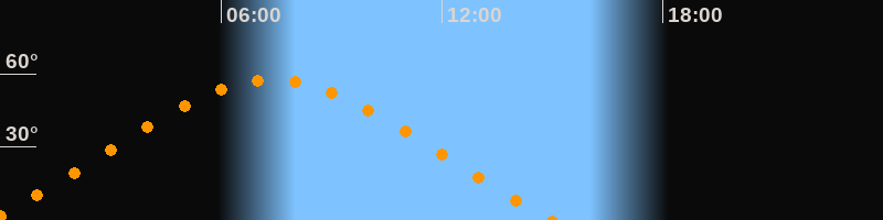 | Höchster Stand (Kulmination) | 07:23 Uhr (h = 57,5°) |