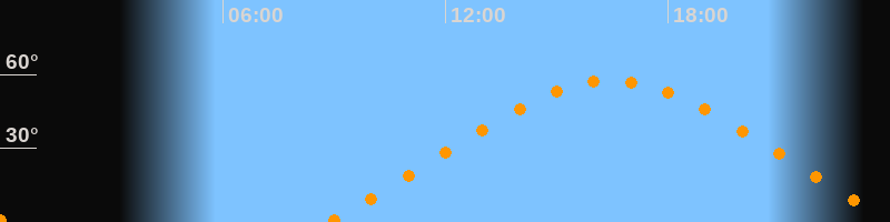 | Höchster Stand (Kulmination) | 16:28 Uhr (h = 57,5°) |