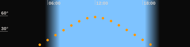 | Höchster Stand (Kulmination) | 12:01 Uhr (h = 57,5°) |