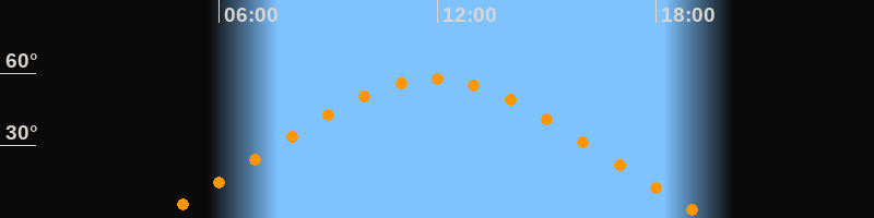 | Höchster Stand (Kulmination) | 11:53 Uhr (h = 57,5°) |