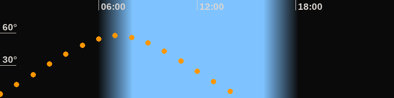 | Höchster Stand (Kulmination) | 07:09 Uhr (h = 57,5°) |