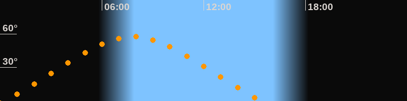 | Höchster Stand (Kulmination) | 07:49 Uhr (h = 57,5°) |