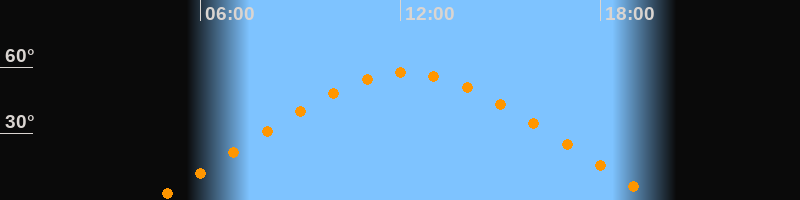 | Höchster Stand (Kulmination) | 12:10 Uhr (h = 57,5°) |