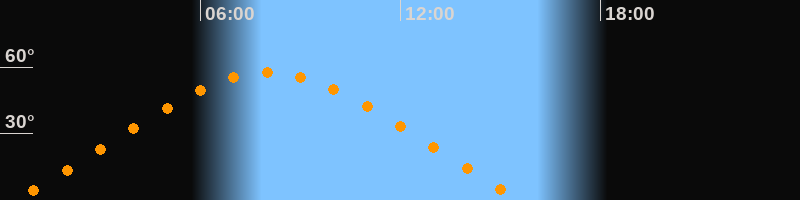 | Höchster Stand (Kulmination) | 08:02 Uhr (h = 57,5°) |