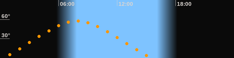 | Höchster Stand (Kulmination) | 07:54 Uhr (h = 57,5°) |