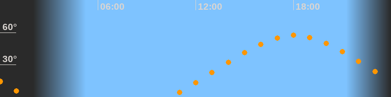 | Höchster Stand (Kulmination) | 18:03 Uhr (h = 57,5°) |