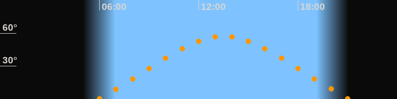 | Höchster Stand (Kulmination) | 13:30 Uhr (h = 57,5°) |