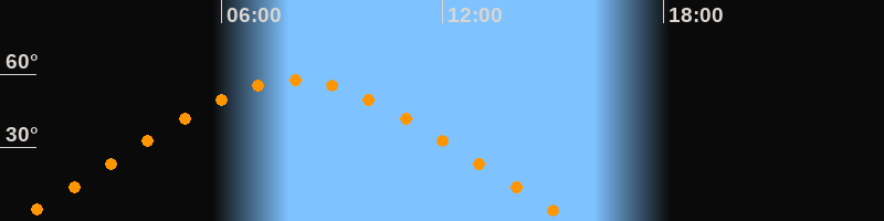 | Höchster Stand (Kulmination) | 07:59 Uhr (h = 57,5°) |