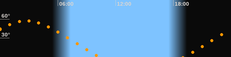 | Aufgang | 19:03 Uhr im Nordosten (αAz = 59,6°) |