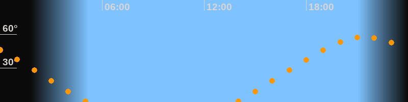| Aufgang | 13:50 Uhr im Nordosten (αAz = 59,6°) |