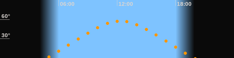 | Höchster Stand (Kulmination) | 12:19 Uhr (h = 57,5°) |