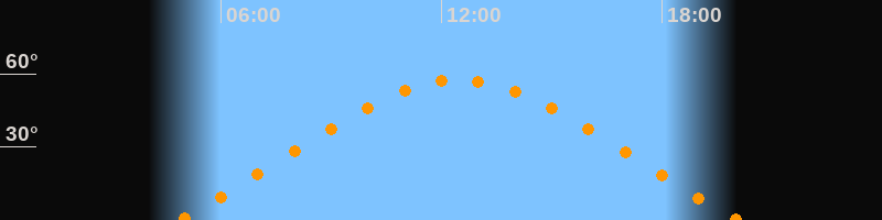 | Höchster Stand (Kulmination) | 12:28 Uhr (h = 57,5°) |