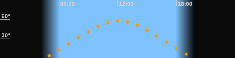 | Höchster Stand (Kulmination) | 12:08 Uhr (h = 57,5°) |