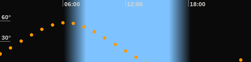 | Höchster Stand (Kulmination) | 06:15 Uhr (h = 57,5°) |