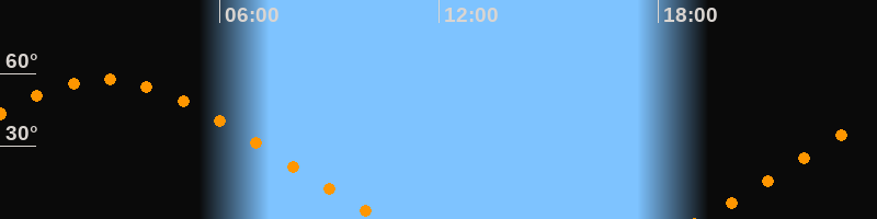 | Aufgang | 19:09 Uhr im Nordosten (αAz = 59,6°) |