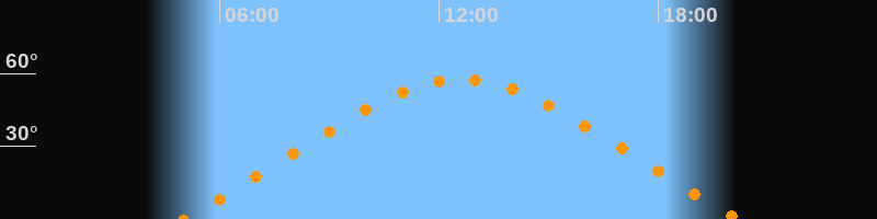 | Höchster Stand (Kulmination) | 12:37 Uhr (h = 57,5°) |
