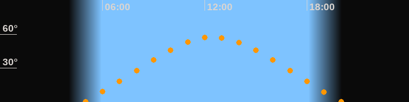 | Höchster Stand (Kulmination) | 12:29 Uhr (h = 57,5°) |