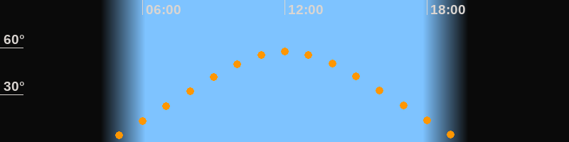 | Höchster Stand (Kulmination) | 12:02 Uhr (h = 57,5°) |