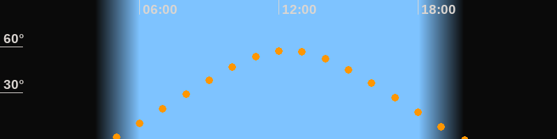 | Höchster Stand (Kulmination) | 12:22 Uhr (h = 57,5°) |