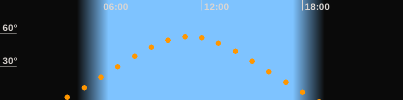 | Höchster Stand (Kulmination) | 11:15 Uhr (h = 57,5°) |